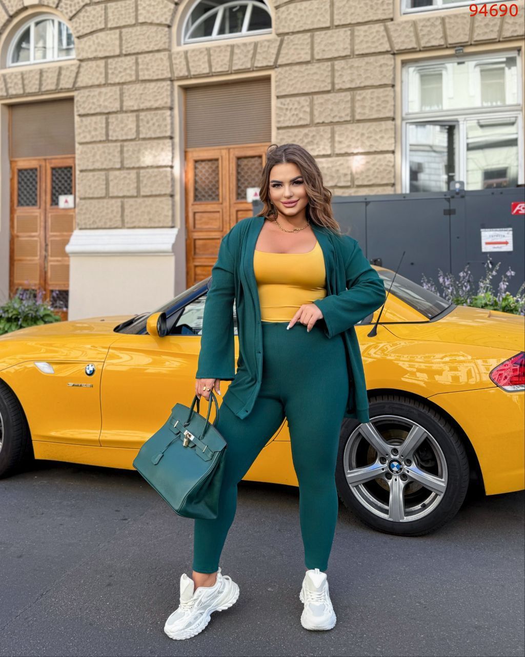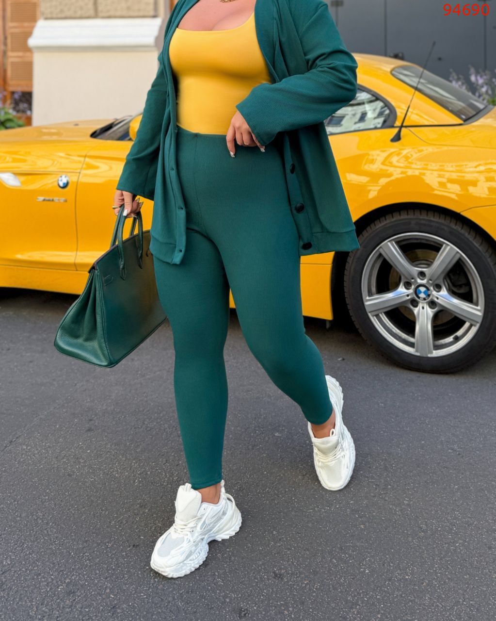 58-60 Об'єм грудей - 130 см, Довжина кофти - 79 см, Довжина рукава кофти - 62 см, Об'єм талії -94 (розтягується до 106 см), Об'єм стегон - 104 см (розтягується 120 см), Довжина лосин - 95