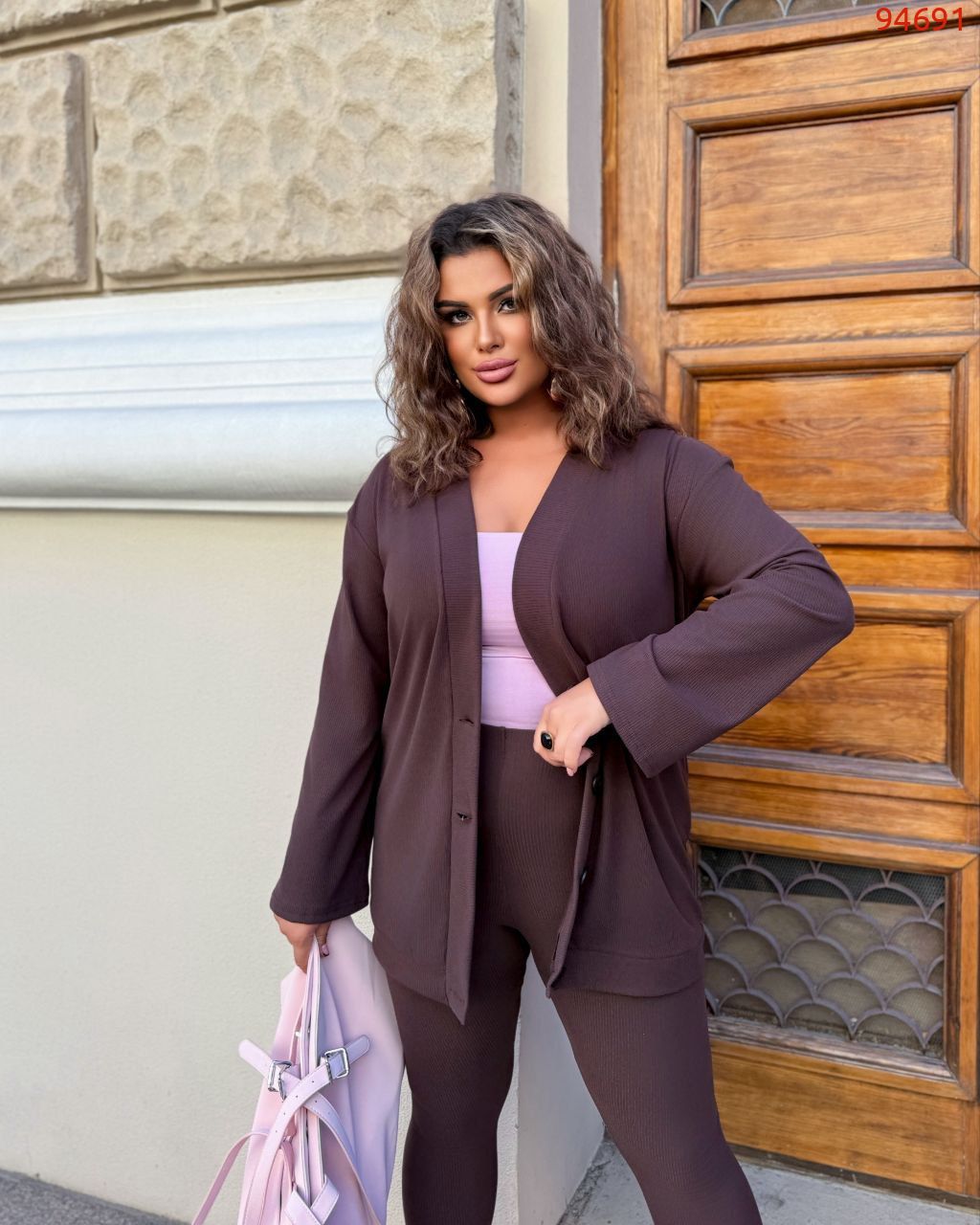 58-60 Об'єм грудей - 130 см, Довжина кофти - 79 см, Довжина рукава кофти - 62 см, Об'єм талії -94 (розтягується до 106 см), Об'єм стегон - 104 см (розтягується 120 см), Довжина лосин - 95