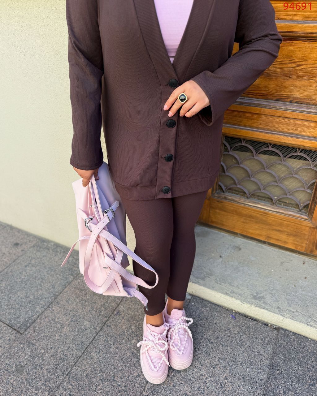 Осінній прогулянковий костюм. Кофта+ Лосини. Кофта подовження на функціональних гудзиках, з довгим пукавом. Лосини без кишень на поясі гумка. Тканина трикотаж махра рубчик.