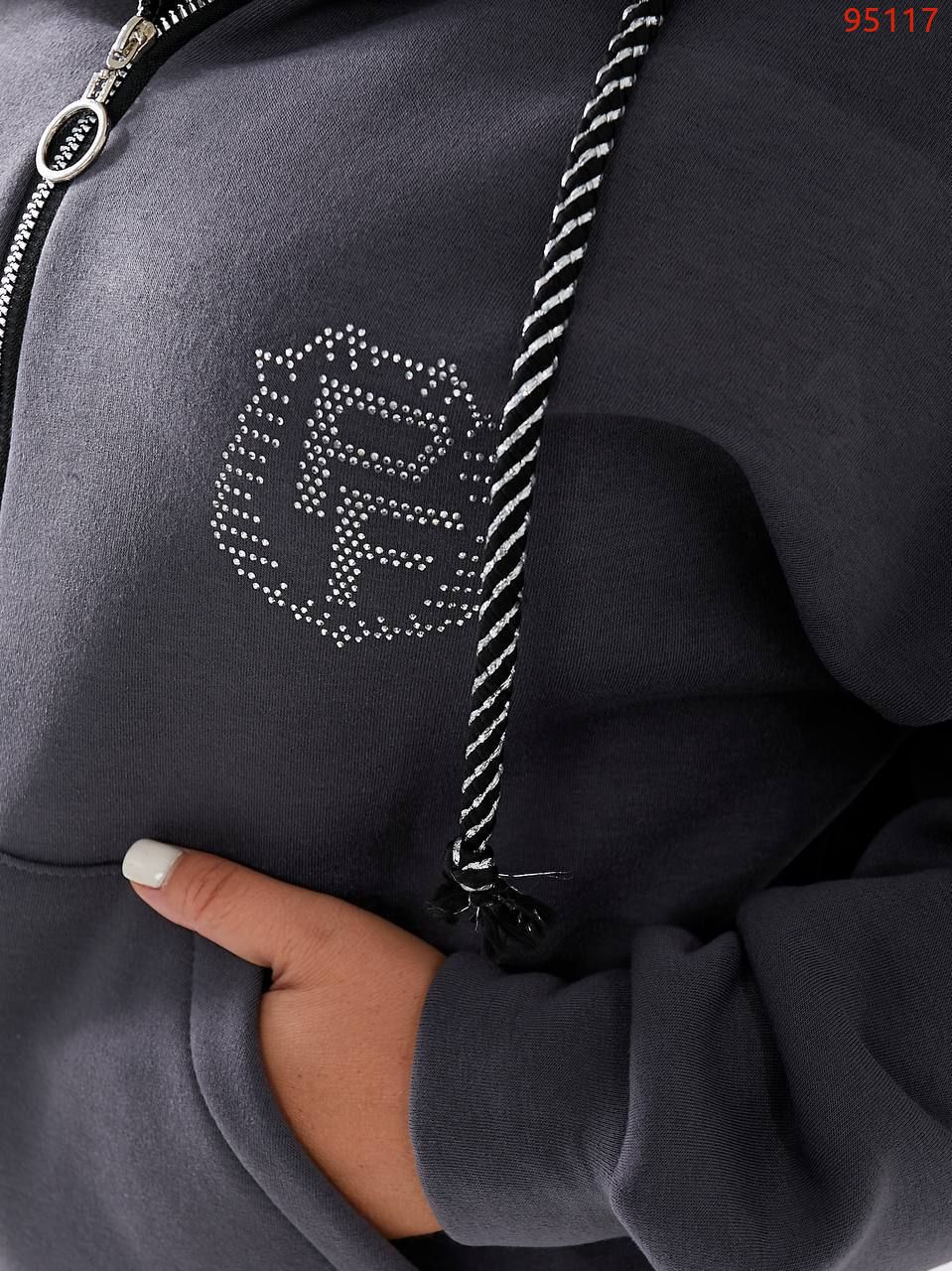 Кофта на змійці, декорована камінням, зручний глибокий капюшон, якісна фурнітура.