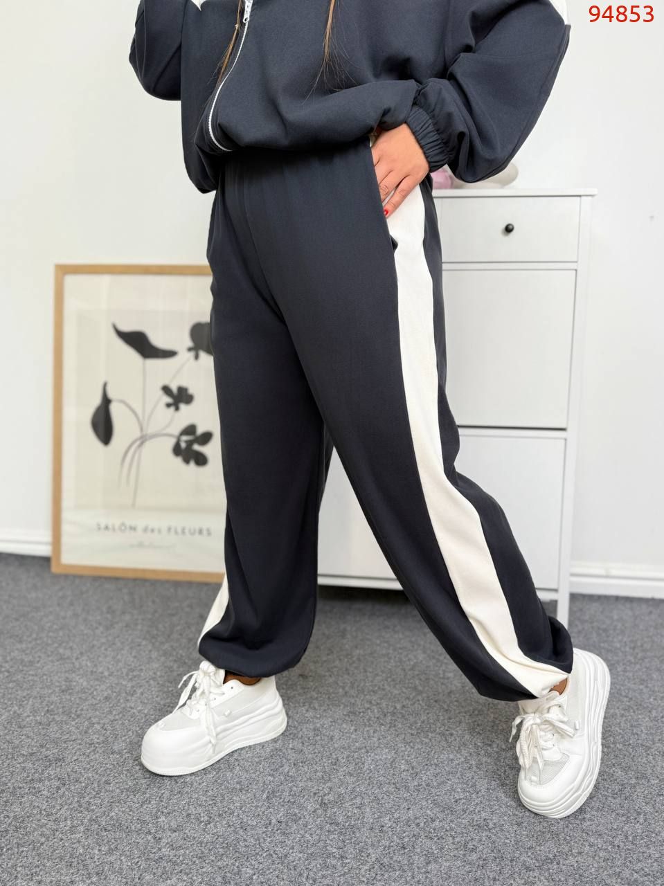 Спортивка по низу регулюється затяжками,що дає змогу носити її в різних варіантах.Джогери з високою посадкою та вільного крою,що робить їх мега комфортними.