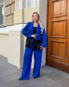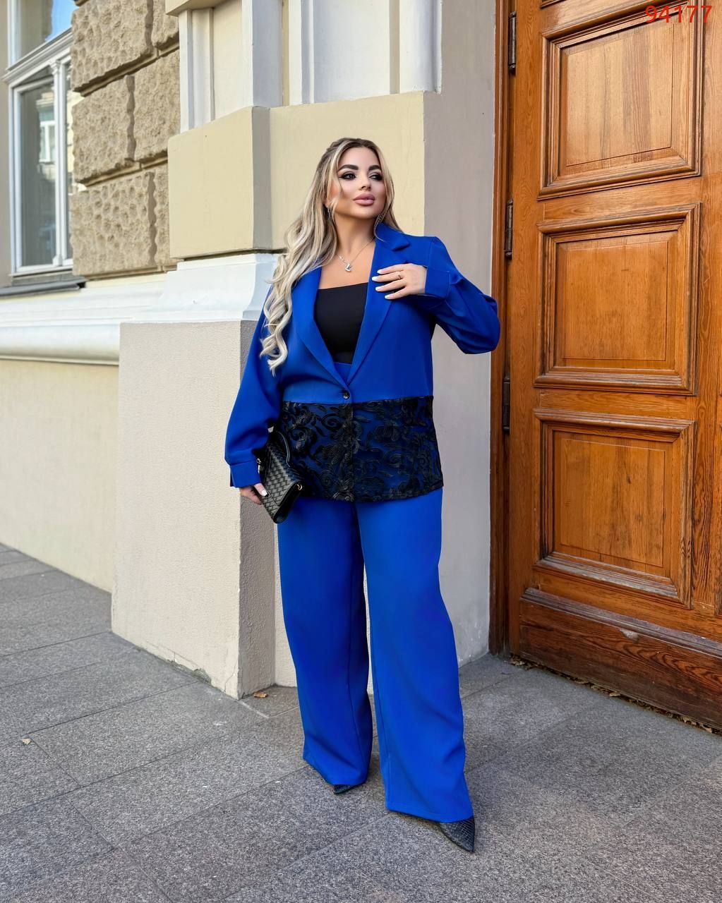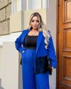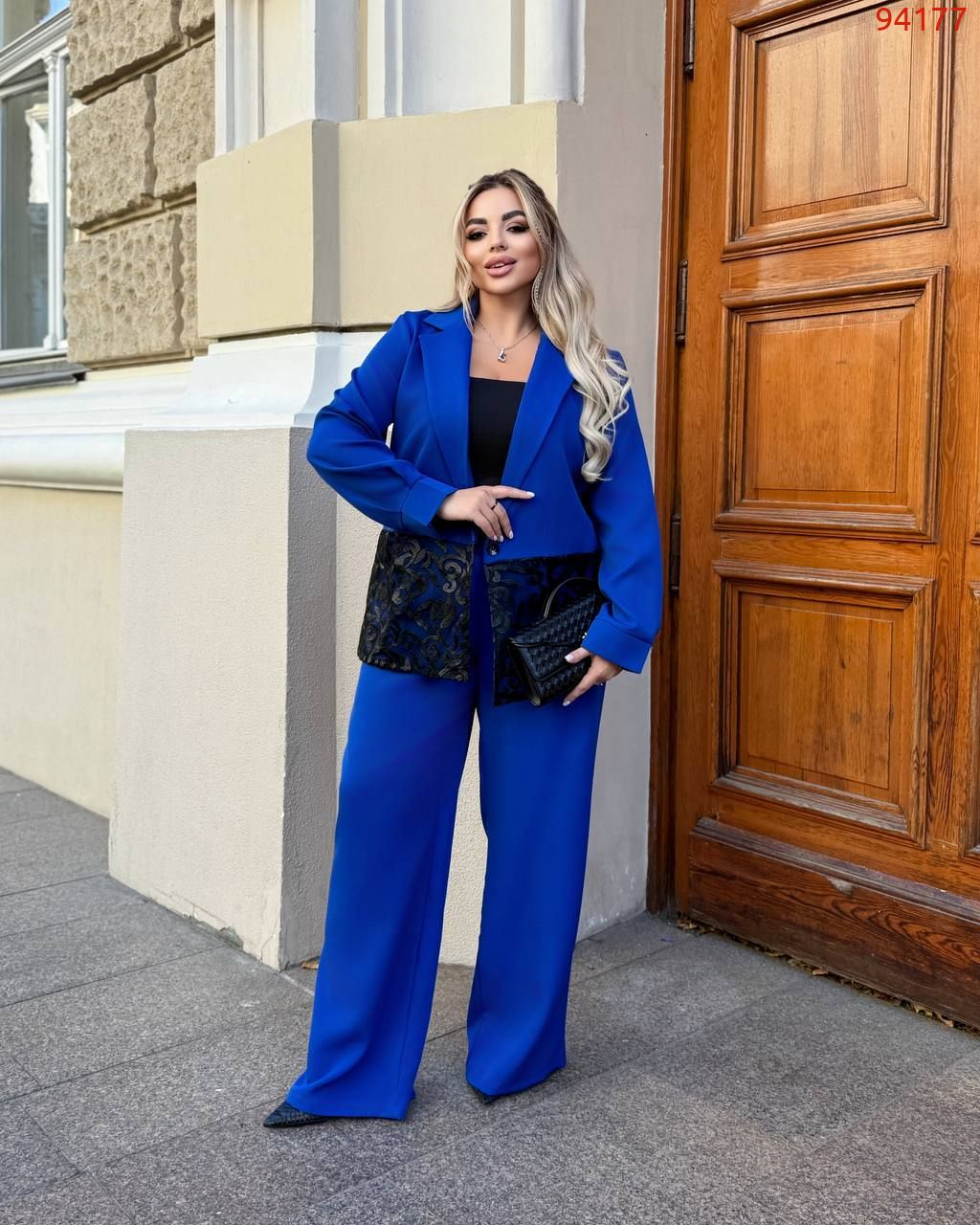 Стильний жіночий костюм .Подовжений піджак, прямого крою, з класичним коміром .Широкі штани. Цей костюм відмінно підійде для повсякденних, ділових та стильних образів, поєднуючи комфорт та елегантність