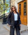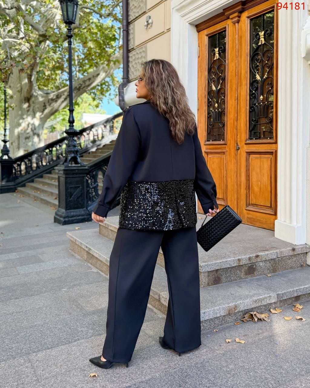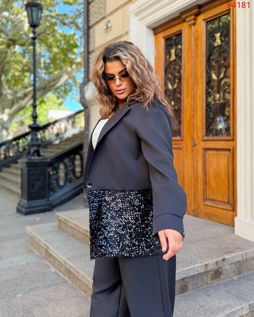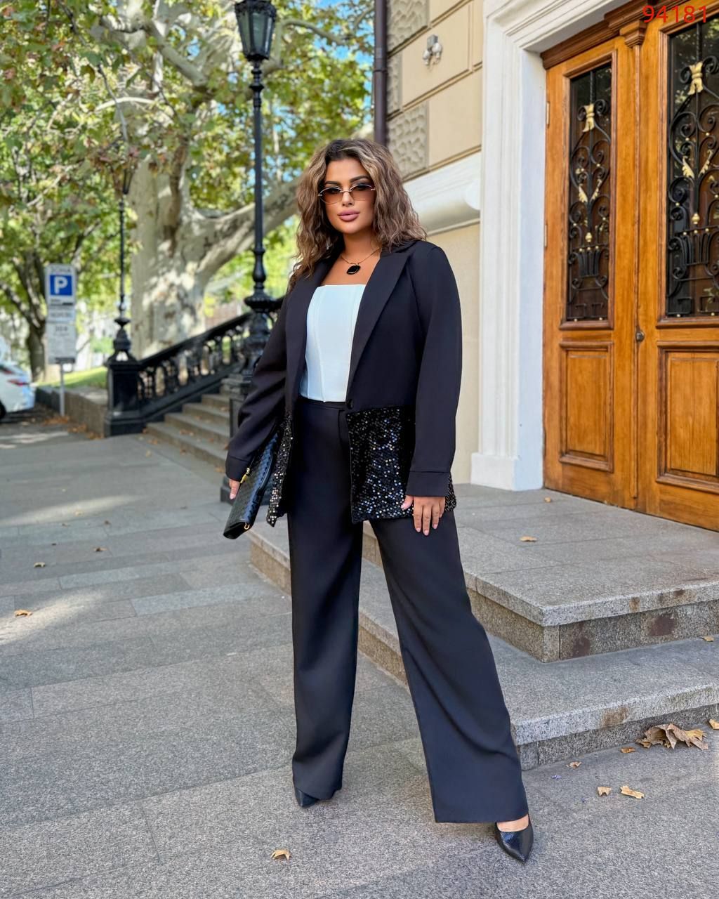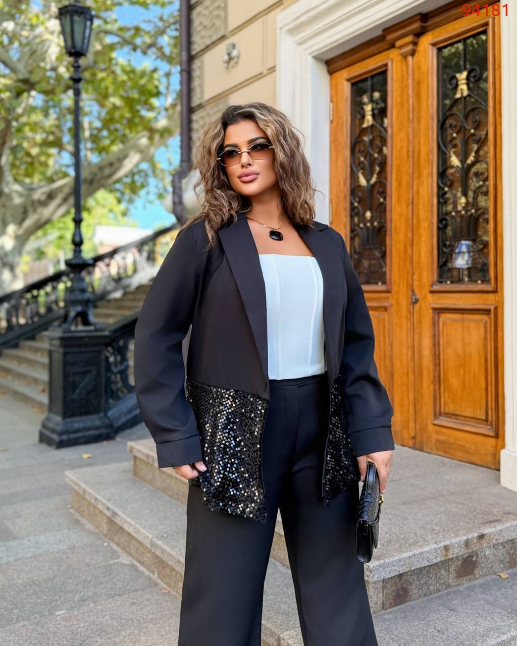 Стильний жіночий костюм .Подовжений піджак, прямого крою, з класичним коміром .Широкі штани. Цей костюм відмінно підійде для повсякденних, ділових та стильних образів, святкових вечорів