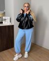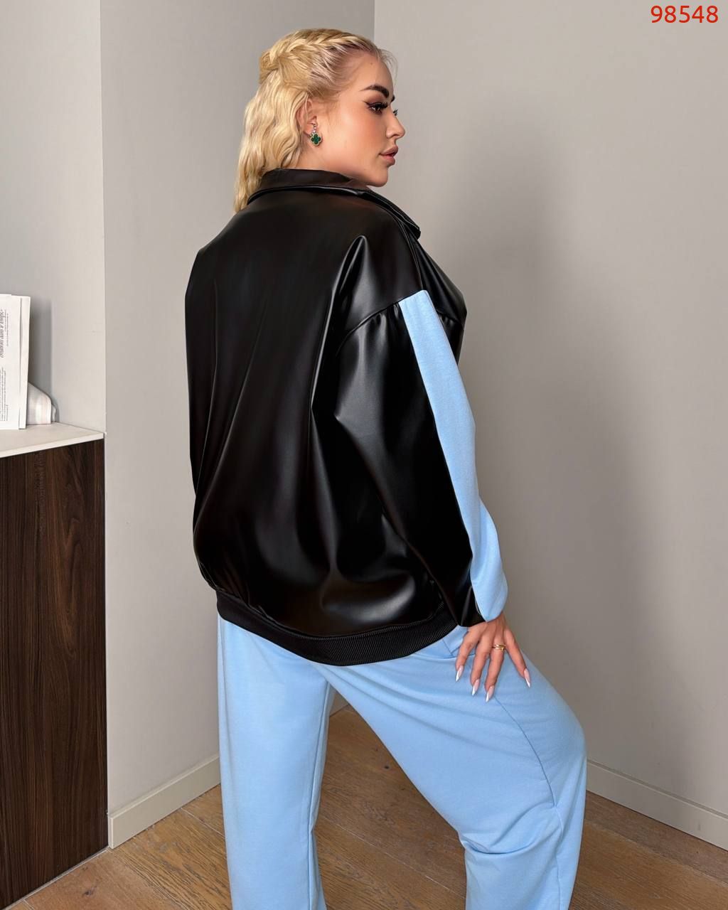 Бомбер+футболка+джогери.Жіночі бомбери із єко шкіри перестали бути частиною певного стилю одягу, і у сучасному модному світі – це важливий елемент будь-якого жіночого образу.