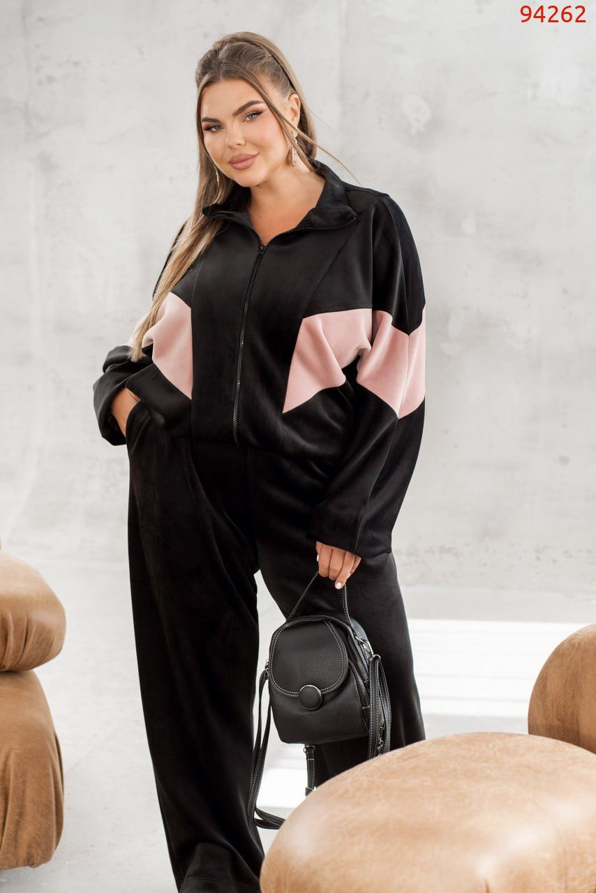 Ми презентує велюровий костюм, який поєднує трендовий стиль і абсолютну зручність! Кофта вільного крою «летюча миша» з горловиною-стійкою та рукавами на еластичних манжетах оберігає тепло і дарує абсолютну свободу рухів. Зручна застібка-блискавка та практичні кишеньки додають функціональності кожному дню. Штани прямого вільного крою з високою посадкою та еластичною талією і бічними кишеньками роблять образ завершеним і неймовірно комфортним. Стиль, зручність і трендова велюрова текстура – все в одному костюмі! Пояс НЕ входить в комплект.