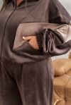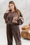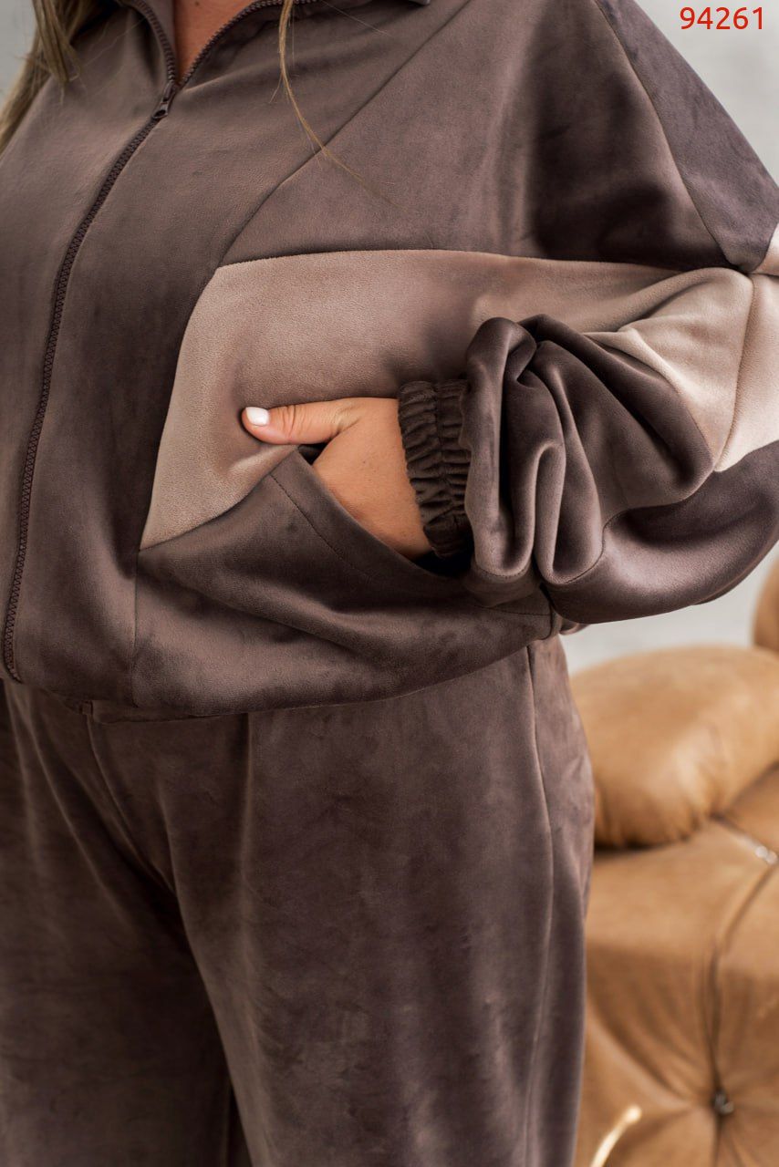 Ми презентує велюровий костюм, який поєднує трендовий стиль і абсолютну зручність! Кофта вільного крою «летюча миша» з горловиною-стійкою та рукавами на еластичних манжетах оберігає тепло і дарує абсолютну свободу рухів. Зручна застібка-блискавка та практичні кишеньки додають функціональності кожному дню. Штани прямого вільного крою з високою посадкою та еластичною талією і бічними кишеньками роблять образ завершеним і неймовірно комфортним. Стиль, зручність і трендова велюрова текстура – все в одному костюмі! Пояс НЕ входить в комплект.