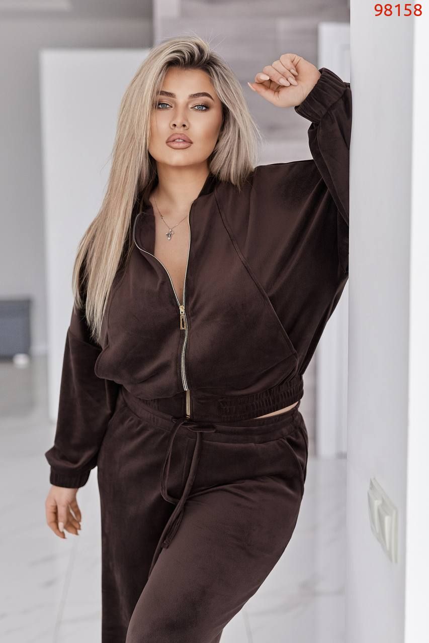 Велюровий оксамитовий костюм шоколад №98158
