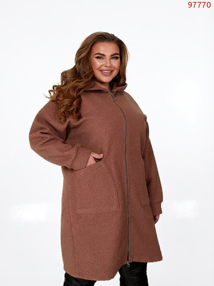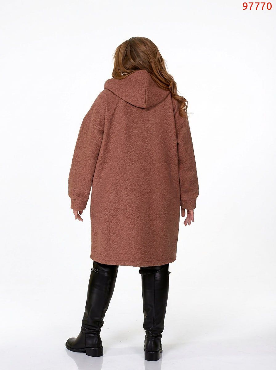 Неймовірно стильний, комфортний кардиган із якісної тканини «баранець» (середня розтяжність). Кардиган має прямий вільний силует та капюшон. Лінія плеча спущена, рукав на манжеті. Застібається на блискавку. Попереду є дві накладні кишені.