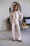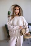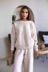 Затишний костюм із щільної фактурної в'язки з м'яким приляганням до тіла. Вільний светр та прямі штани створюють елегантний, розслаблений образ щодня.