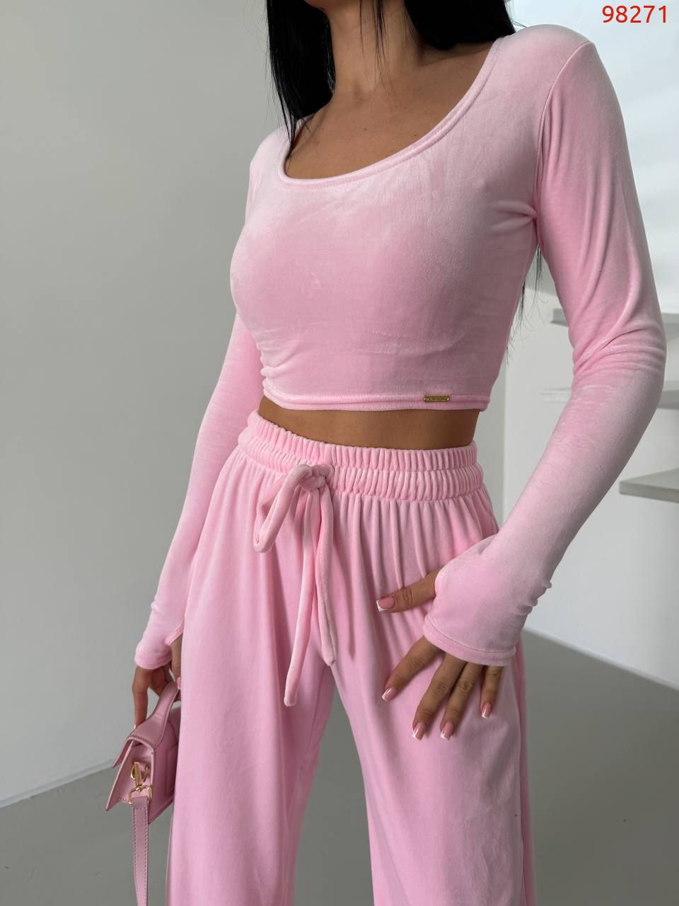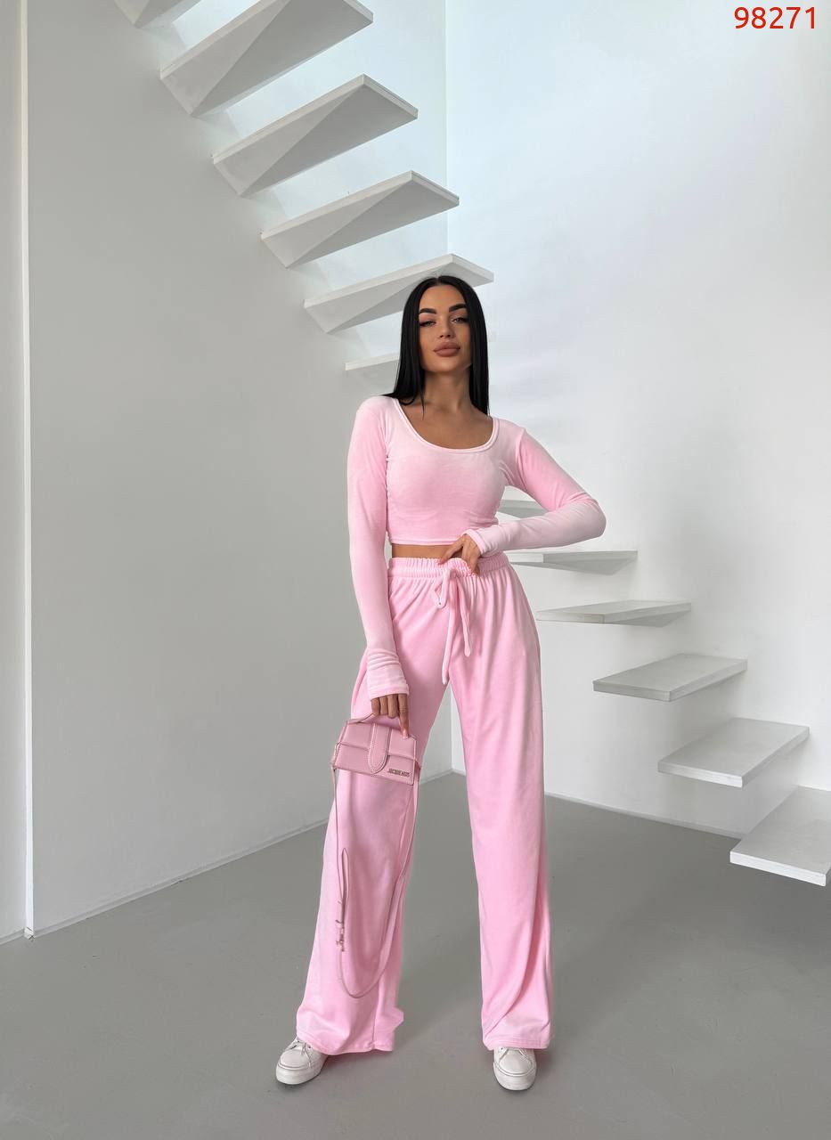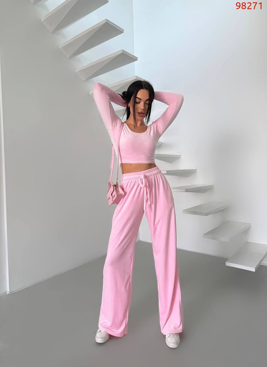 Стильний практичний костюмчик з велюру. Приємна мʼяка тканина, тягнеться. На костюмі є пришивна, як на фото. Також лонг йде з розрізом на пальчику. Штани йдуть вільні, на резинці в талії та шнурочком.