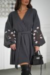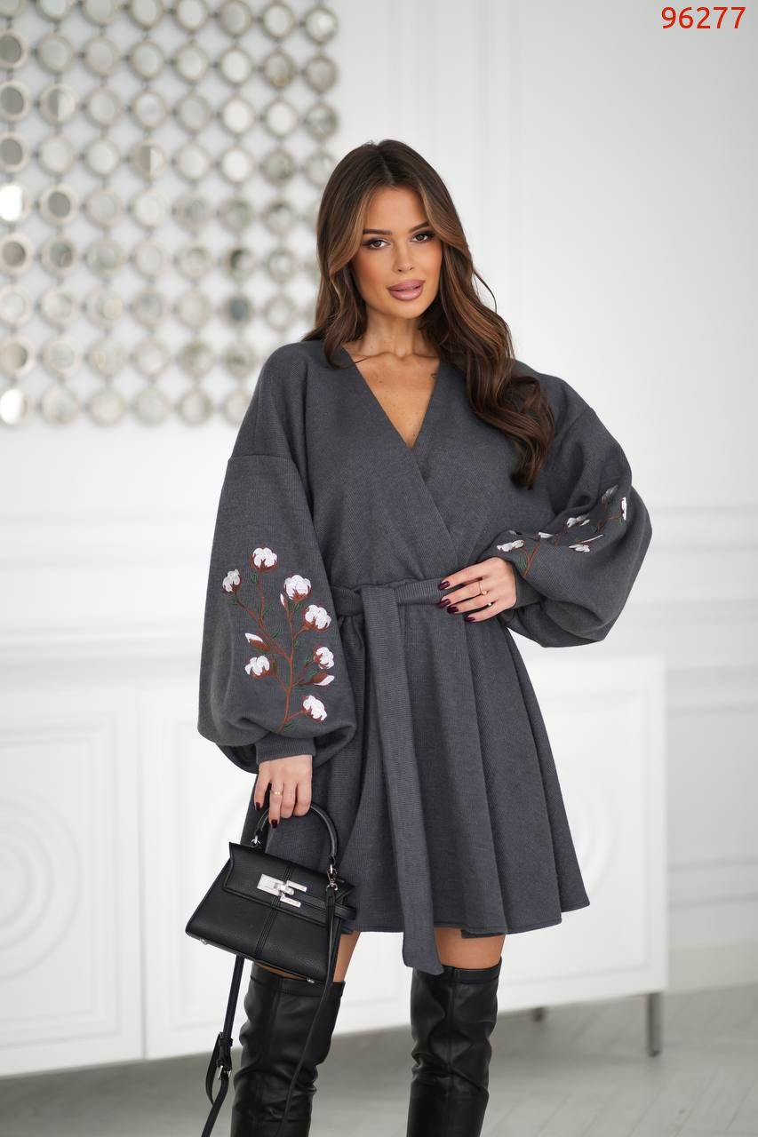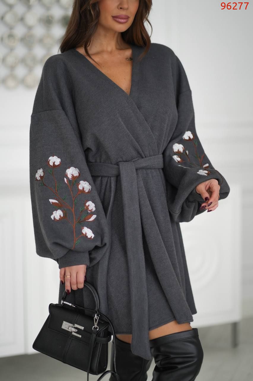 Головний акцент – розкішні об’ємні рукави, які створюють ефектний силует. Завдяки манжету рукав красиво формується, а виразна вишивка у вигляді гілочок бавовни робить кожен рух ніжним і естетичним.