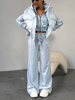 Кроме стильных трикотажных изделий, мы предлагаем теплые женские спортивные костюмы для осенне-зимнего сезона. Это практичные болоньевые комплекты модных расцветок. Они состоят из удобных брюк и уютных курточек, рассчитанных на самую ветреную и неблагоприятную погоду. Вы также сможете заказать спортивные комплекты любых (в том числе и больших) размеров.