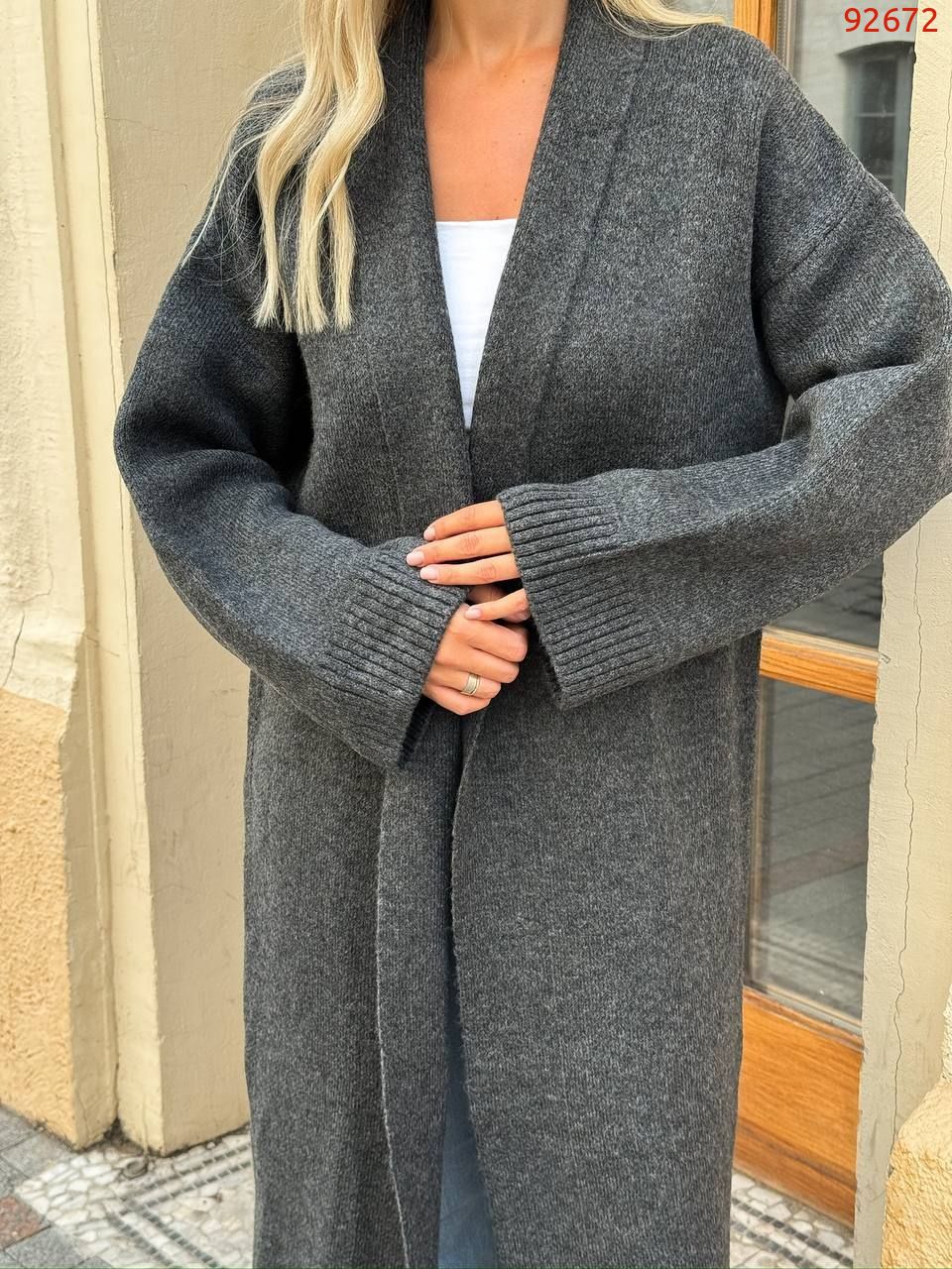 Подовжений кардиган, виконаний з м'якої пухнастої пряжі. Кардіган ідеально підійде на прохолодну погоду.