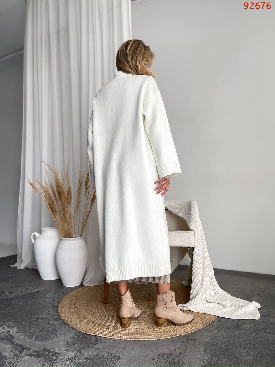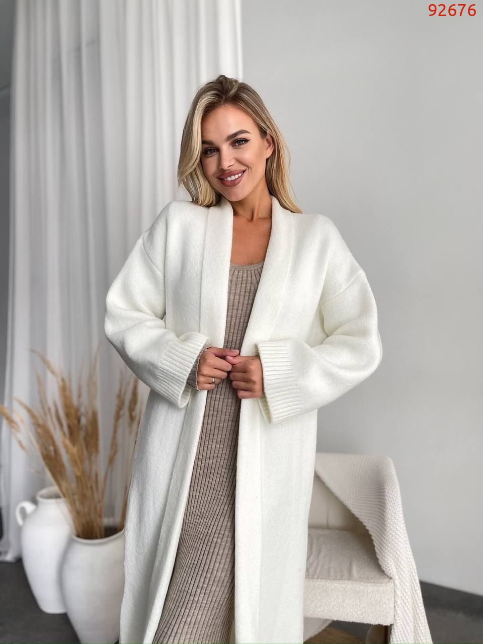 Подовжений кардиган, виконаний з м'якої пухнастої пряжі. Кардіган ідеально підійде на прохолодну погоду.