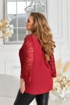 Виріз горловини V-подібний. Рукав трохи вкорочений, виконаний із високоякісного гіпюру, низ на манжеті. Низ блузи асиметричний, попереду трохи коротший. Застібок, кишень немає.