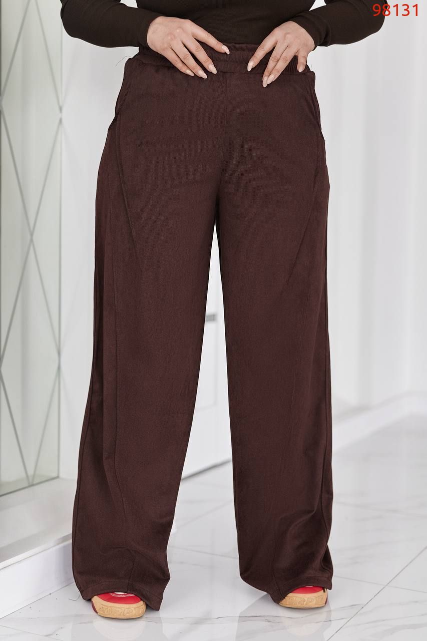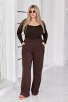 Ці штани поєднують у собі комфорт, продуману конструкцію та сучасну естетику. Вільний прямий силует м’яко лягає по фігурі, не облягаючи, та створює витягнутий, збалансований образ. Еластичний пояс забезпечує зручну посадку по талії без тиску, що робить модель ідеальною для щоденного носіння.