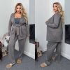 Штани з високою посадкою , пояс на гумці . Халат прямого покрою , з кишенями , та поясом .