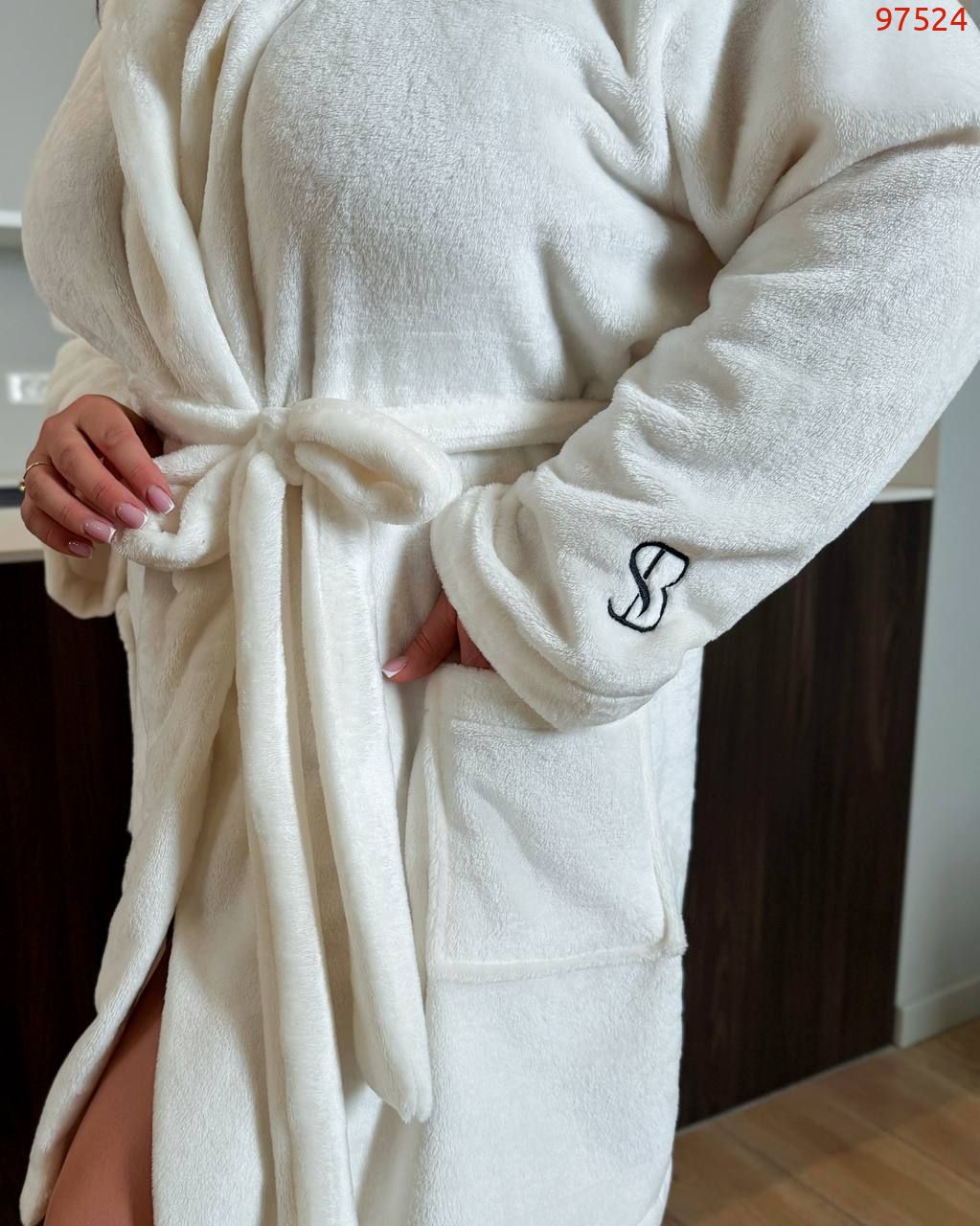 Халат із махри з вишивкою на рукаві.