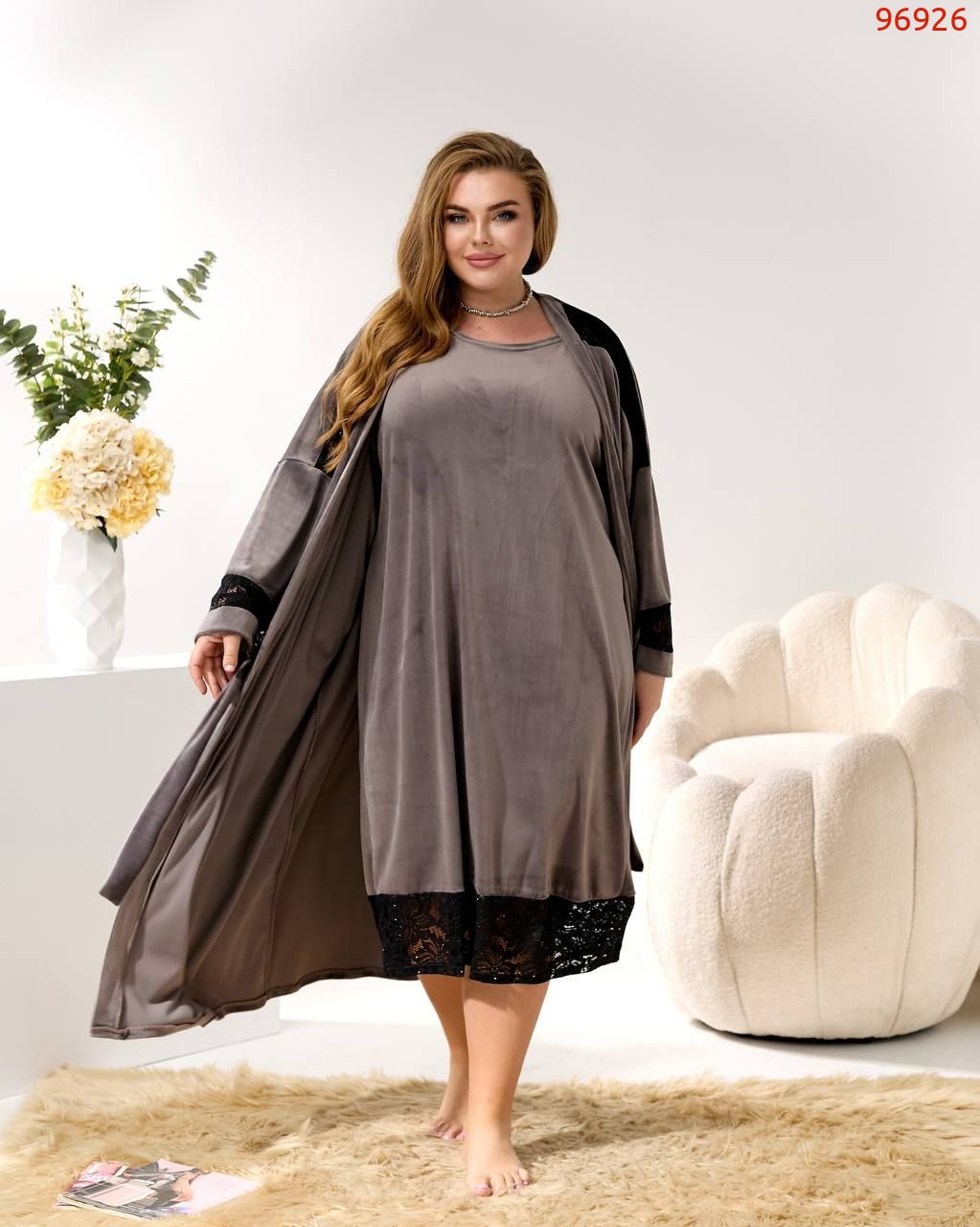 виміри виробу у спокійному стані : довжина сорочки 111 см, довжина халата 118 см