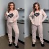 Штани з високою посадкою , пояс на гумці . Кофта прямого покрою з нашивкою .