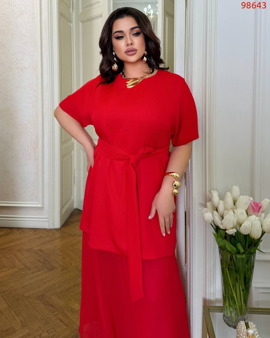 Комплект сукня+спідниця червоний №98643