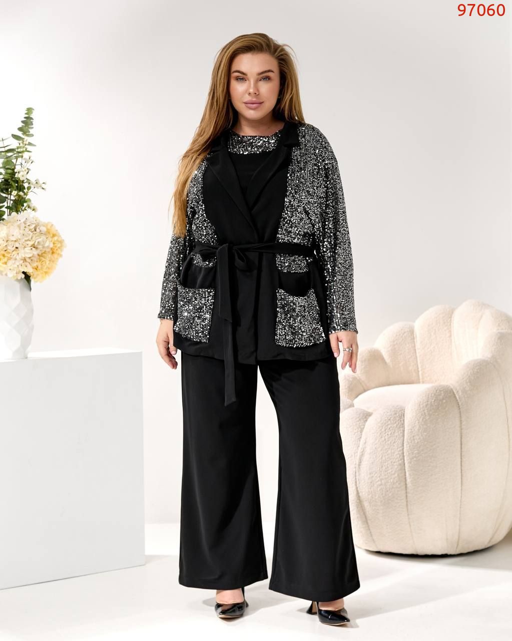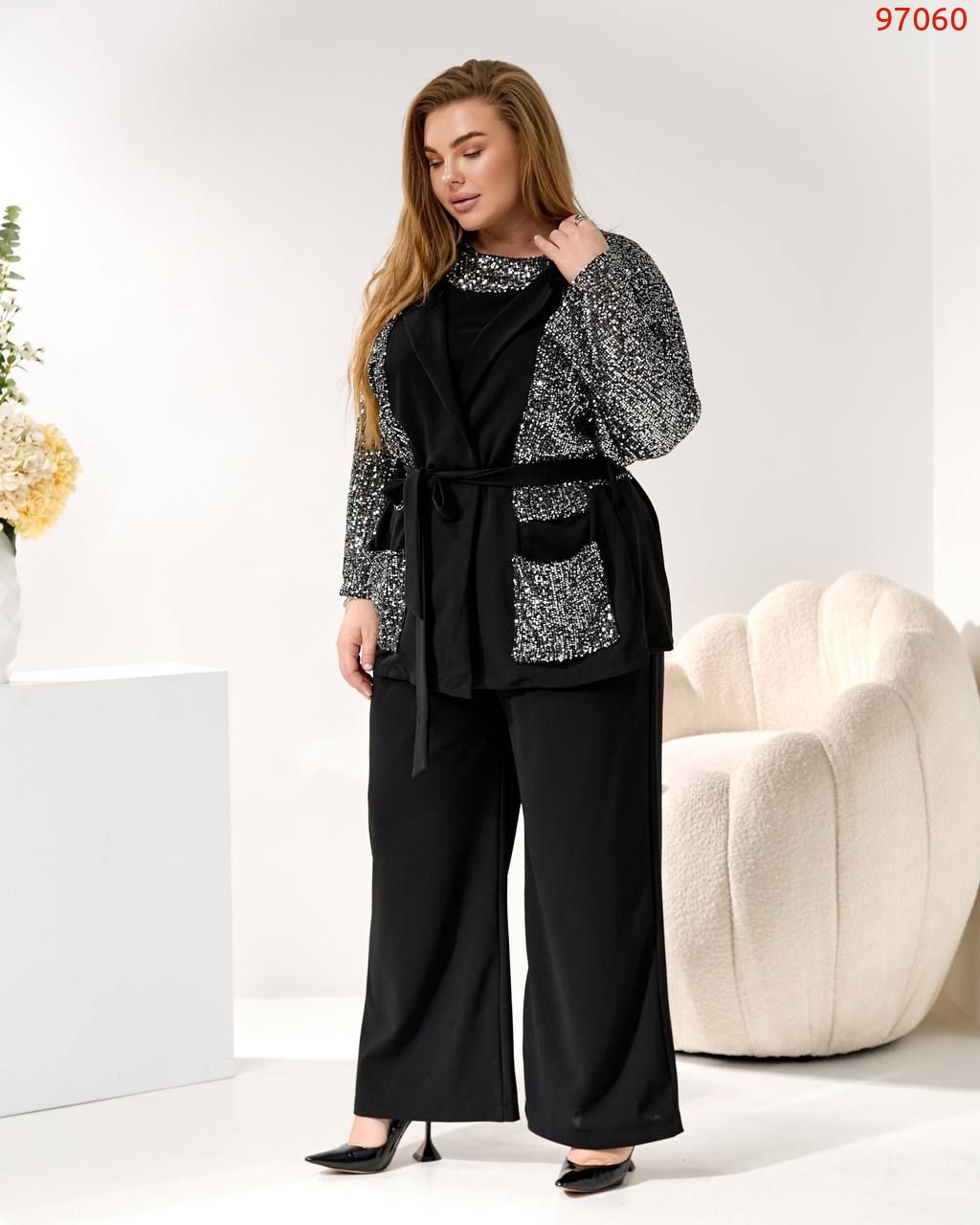 Представляємо елегантний та модний брючний костюм, створений, щоб підкреслити вашу індивідуальність на будь-якій урочистості. Ідеальне вбрання для корпоративу , новорічної вечірки, дня народження або будь-якого вечірнього заходу.