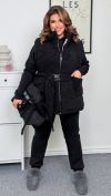 Осінній утеплений костюм трійка - жилет + худі + штани . Жилет на блискавці , комір стійка , з кишенями , пояс в комплекті . Худі на манжеті , з капюшоном . Штани з високою посадкою на гумці , з бічними кишенями , низ на манжеті .