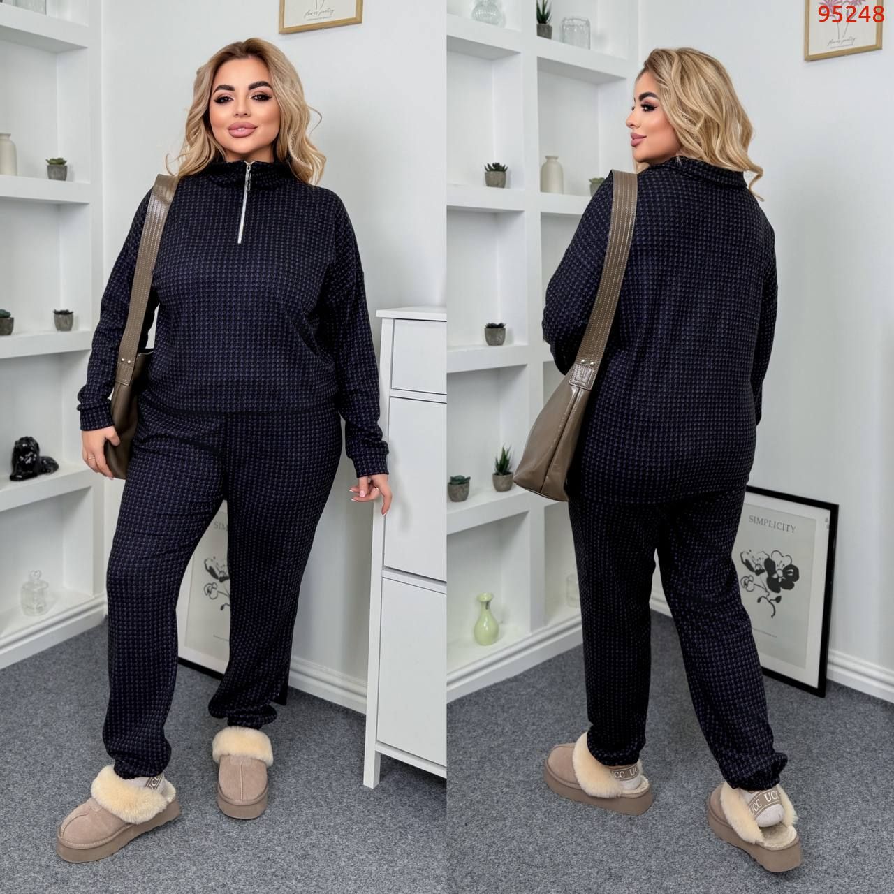 Довжина штанів : 106 см. Теплий костюм двійка . Кофта з коміром стійкою на блискавці , на гумці .