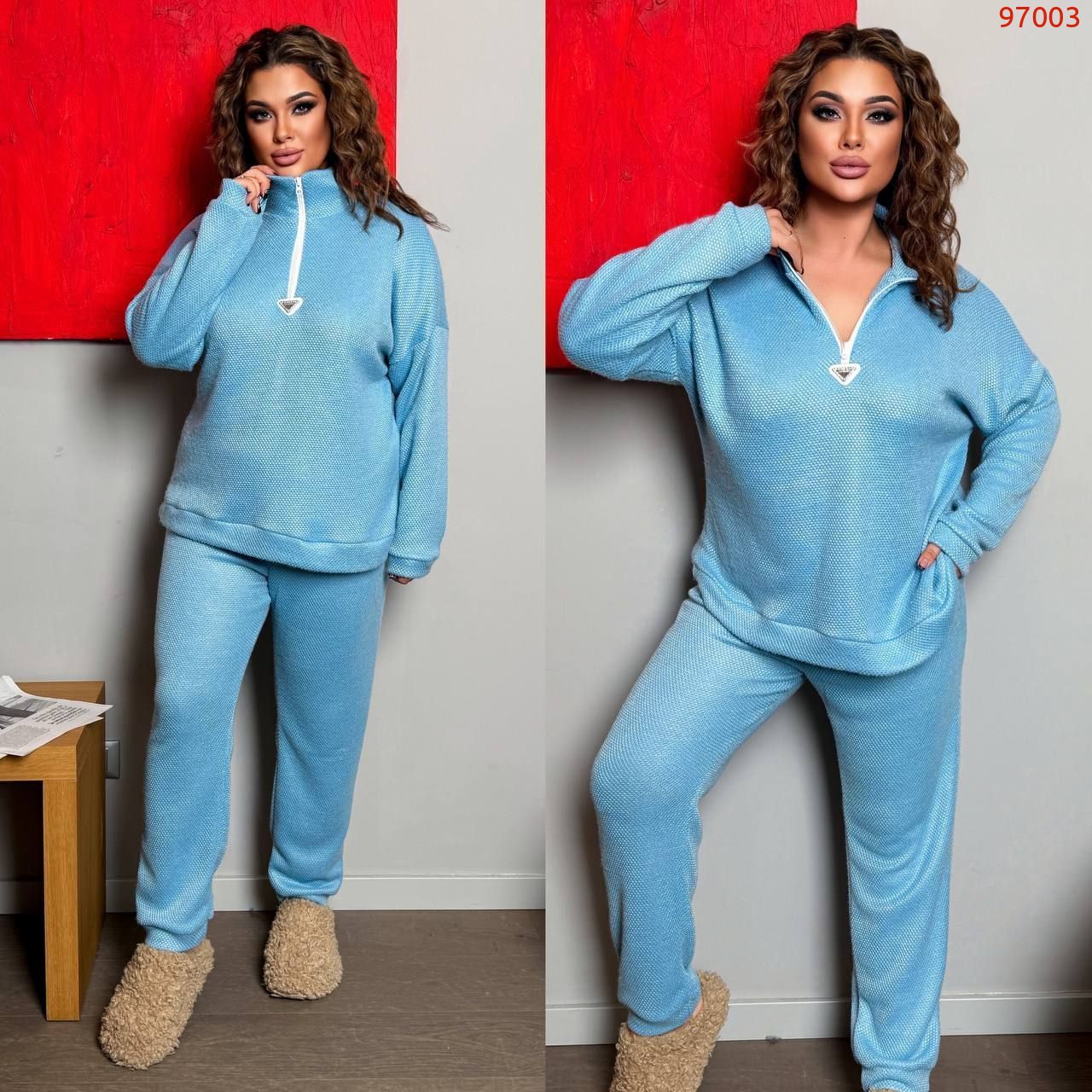 Довжина штанів : 106 см. Теплий костюм двійка . Штани з високою посадкою , пояс на гумці . Кофта прямого покрою на манжеті , комір на блискавці .