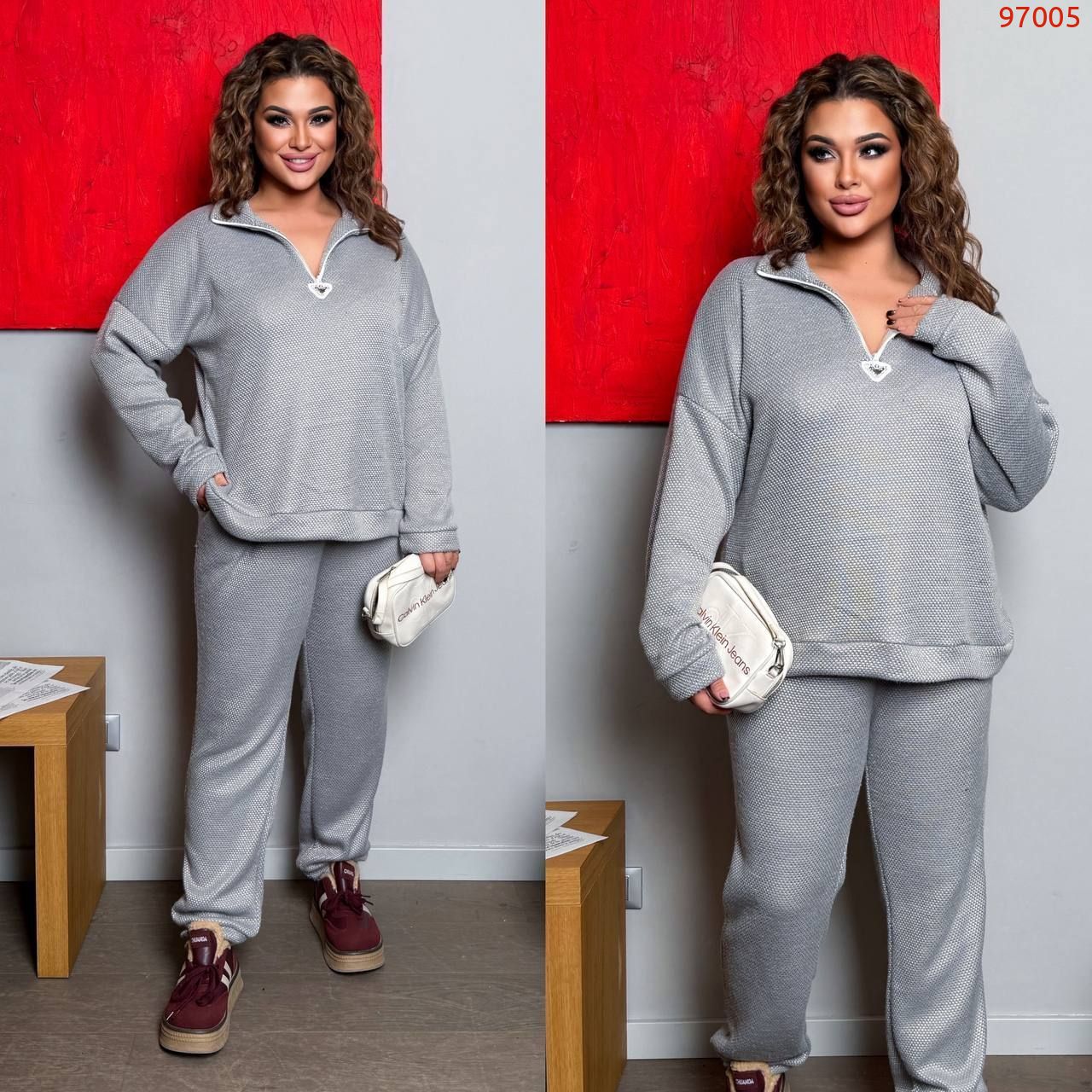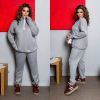 Довжина штанів : 106 см. Теплий костюм двійка . Штани з високою посадкою , пояс на гумці . Кофта прямого покрою на манжеті , комір на блискавці .