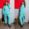 Довжина штанів : 106 см. Теплий костюм двійка . Штани з високою посадкою , пояс на гумці . Кофта прямого покрою на манжеті , комір на блискавці .