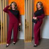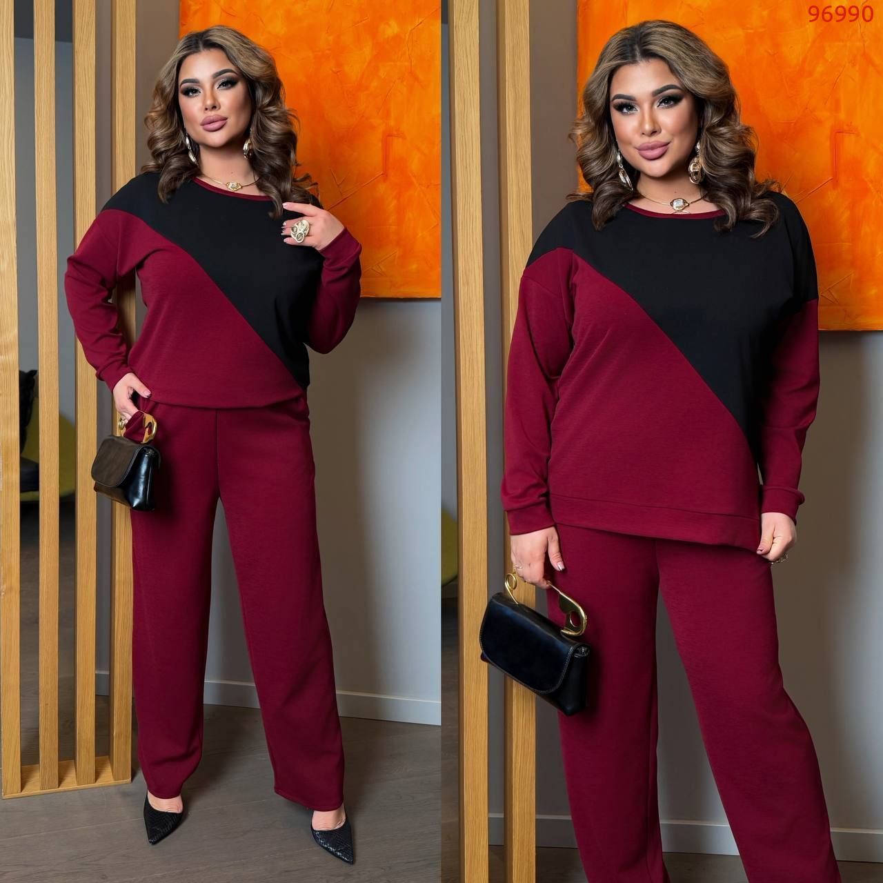 Довжина штанів : 107 см. Стильний костюм двійка . Штани з високою посадкою , пояс на гумці . Кофта прямого покрою на манжеті .