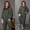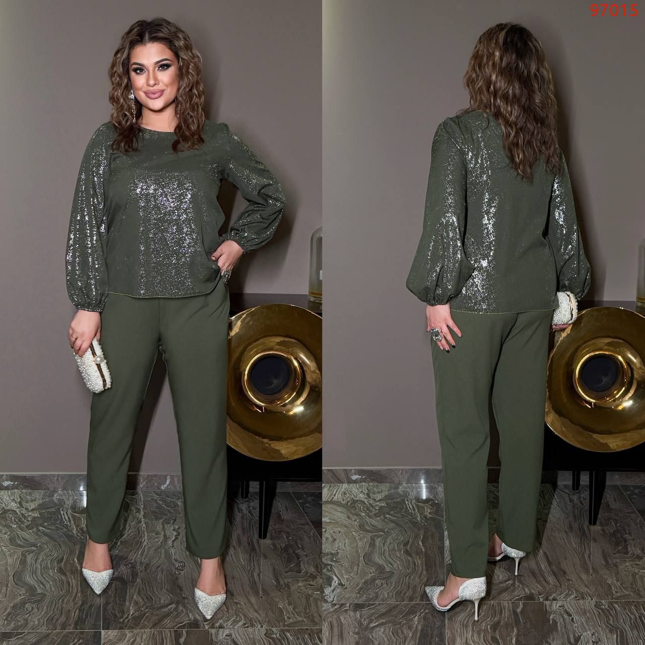 Довжина штанів : 100 см. Святковий костюм двійка . Штани з високою посадкою , пояс на гумці . Кофта прямого покрою , широкий рукав на гумці .