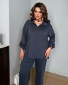 Стильний костюм на щодень. Вільна сорочка з V-вирізом та прямі брюки візуально витягують силует.