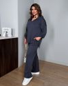Штани на резинці, з високою посадкою. Універсальний дизайн – під кросівки, лофери чи підбори. Рукава в сорочці регулюються патами, що дає можливість легко перетворити рукав повної довжини на рукав 3/4. Приємна до тіла тканина, має розтяжність.