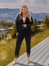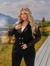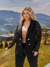 ▪︎ Піджак двобортний, з відкладним коміром і декоративними ґудзиками зі стразами.
