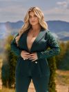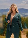 ▪︎ Піджак двобортний, з відкладним коміром і декоративними ґудзиками зі стразами.