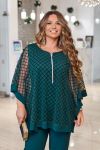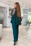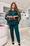 Шикарний костюм вільного силуету декорований сіткою з оксамитовими візерунками спереду та на рукавах.