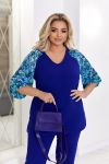 Створити ошатний образ із брюками можливо разом з нашою новинкою! Комплект складається з блузи та штанів. Блуза прямого силуету. Рукава реглан з прозорої тканини з принтом, що контрастно поєднується з основною тканиною виробу. Низ рукава оброблений на резинку. Горловина V-подібної форми. У бічних швах розрізи блузки. Перед нагрудними виточками. Штани сідають по фігурі, середня посадка, з кишенями. Відчуйте себе впевненою та стильною у будь-якій ситуації!