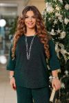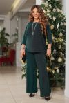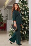 Розкішний комплект складається з вільної блузи та широких штанів "палаццо". Блуза прямого силуету з суцільно кроєними рукавами "кажан". Рукави довжиною 3/4. Низ на манжетах. Штани прямі широкі на поясі з гумкою по колу. Це справді грайливо та святково!