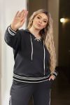 Худі вільного крою з капюшоном, на грудях має шнуровку , низ худі і манжети прикрашені рибаною, штани високої посадки з бічними кишенями, вільного крою.