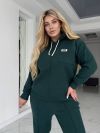 Стильний жіночий костюм у глибоких трендових відтінках– ідеальний вибір для тих, хто цінує комфорт і лаконічну елегантність. М’яка, приємна до тіла тканина забезпечує затишок у прохолодну погоду, а продуманий крій додає образу сучасності. Світлі шнурки на капюшоні створюють контрастний акцент, а акуратний логотип на грудях підкреслює брендований стиль. Широкі штани зі стрілками візуально подовжують ноги та забезпечують вільний рух.