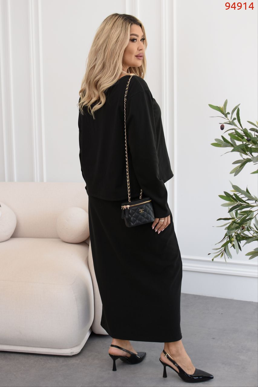 Теплий прогулянковий костюм. Кофта+Спідниця. Кофта, горловина човен, довгий рукав, Спідниця довга приталена, довжина максі.