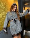 Тканина: Сорочка з планкою на ґудзиках, мереживо по низу рукавів. Спідниця на гумці, мереживо по низу. Склад: поліестер - 100%.