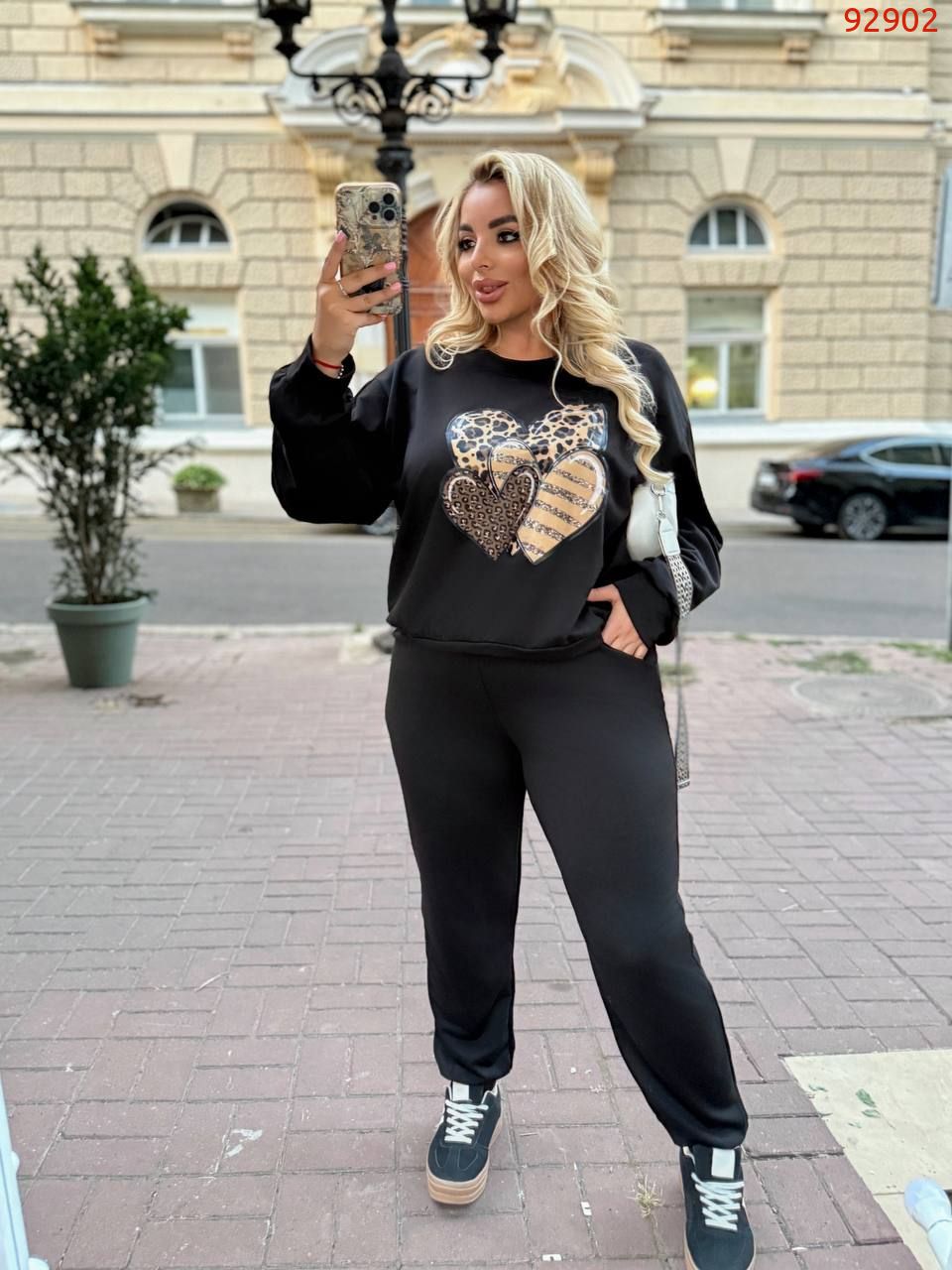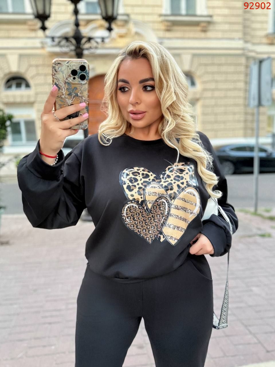 54-56 ОГ – 130 см ОТ по манжету кофти 116 см ОТ по гумці штанів 90 см (у розтягнутому 130 см) ОБ- 125 см Довжина штанів 100 см, кофта 62см