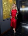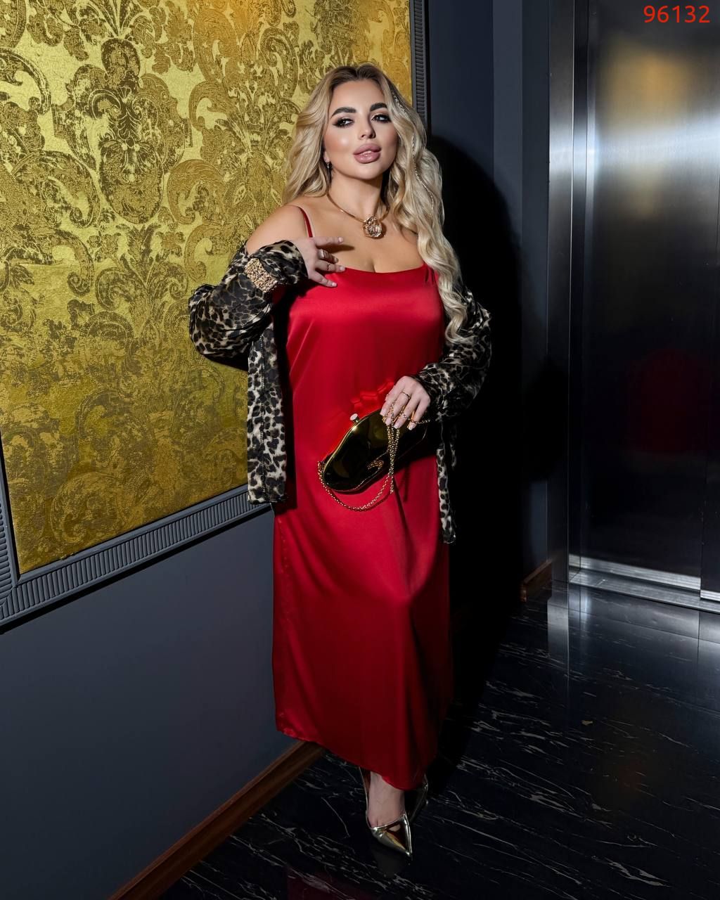 Сукня обьем грудей одягається до 124, талія 130, бедра 140