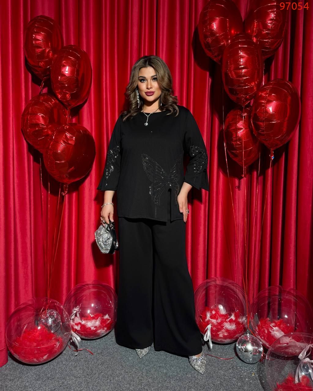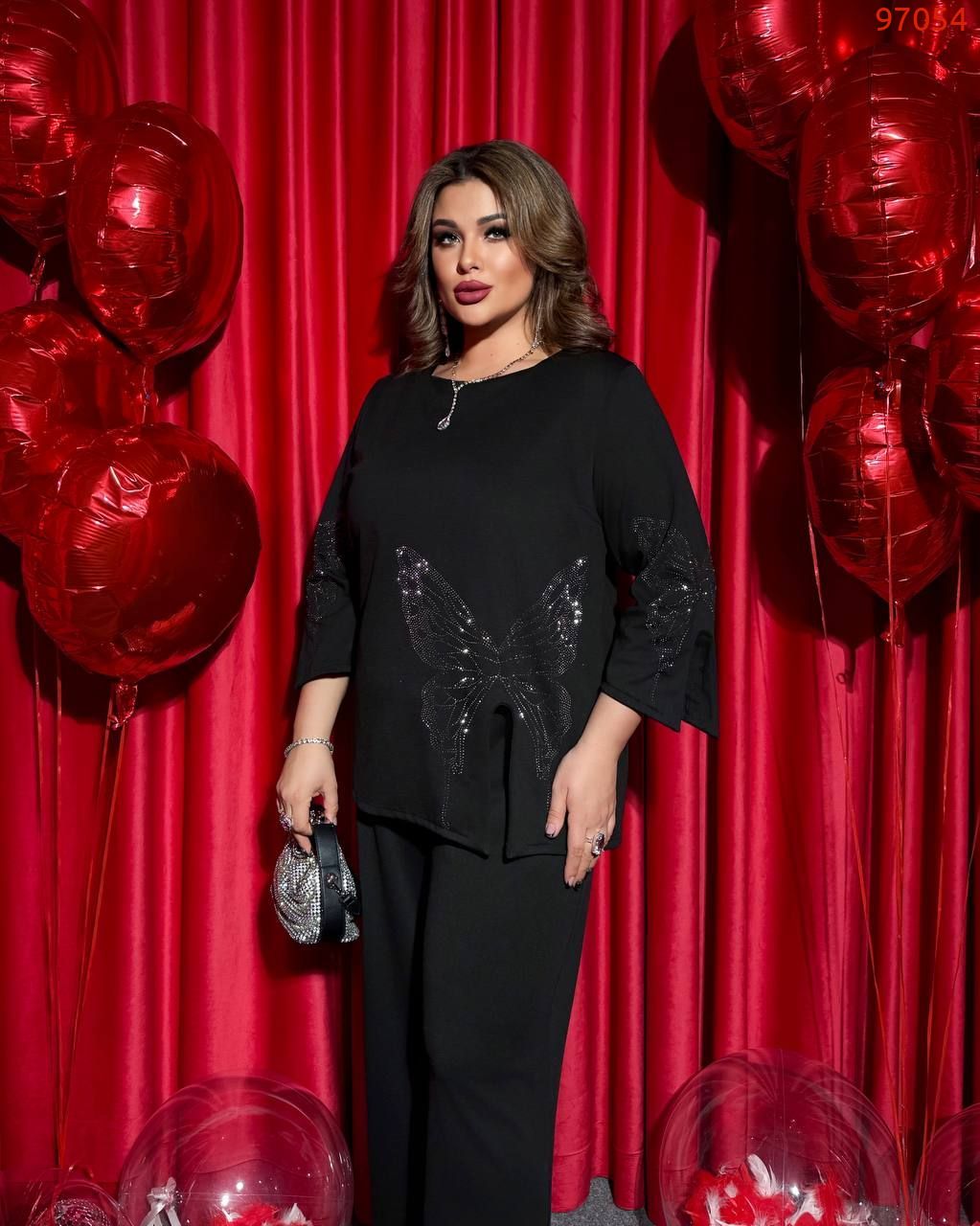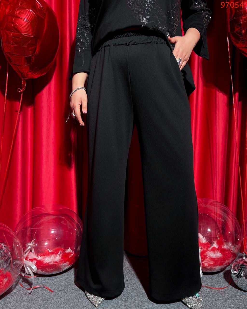 Цей вишуканий брючний костюм, що складається з туніки та штанів палаццо, створений для того, щоб підкреслити вашу жіночність та почуття стилю! Костюм чудово підходить як для урочистих заходів , так і для створення ефектного повсякденного або офісного образу