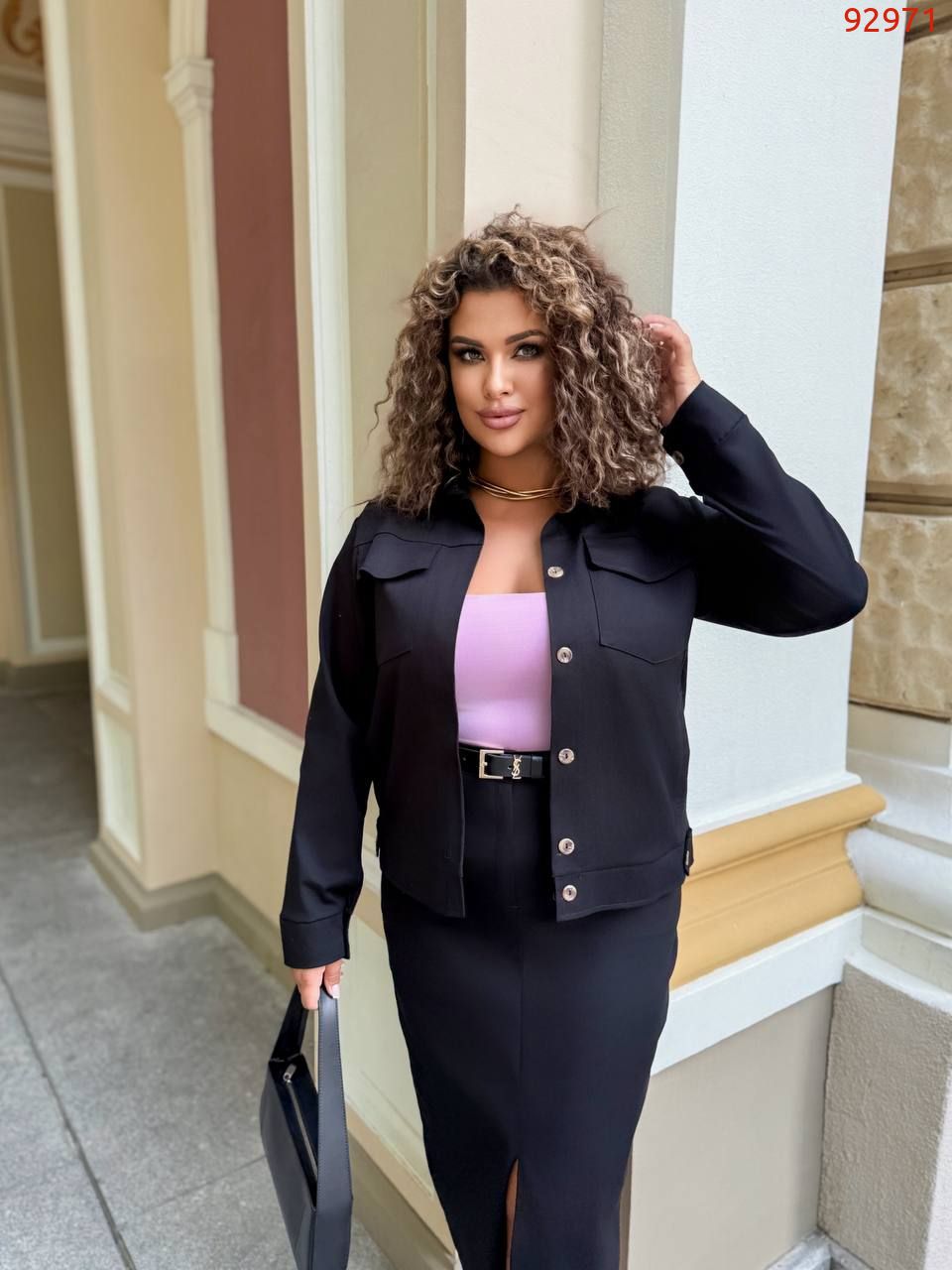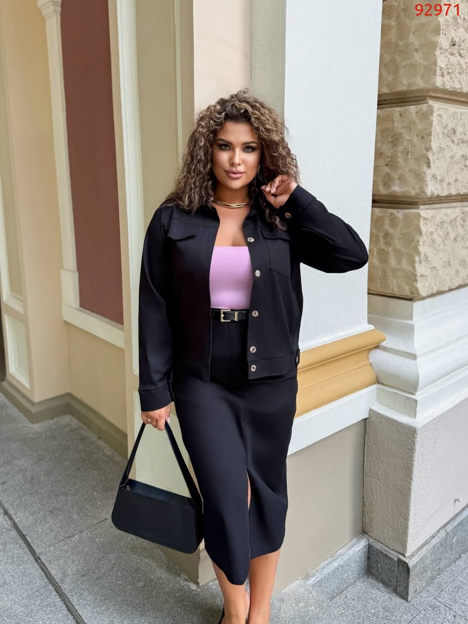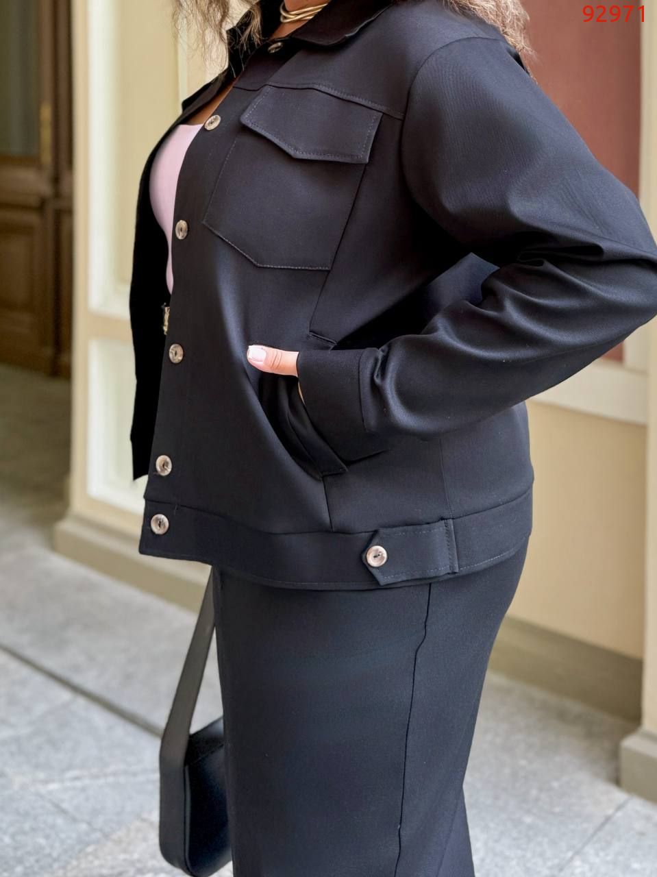 Трендовий джинсовий костюм двійка. Куртка+спідниця з розрізом.