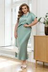 Блуза з V-подібним вирізом і коротким рукавом з манжетами дозволяє з комфортом насолоджуватися цим комплектом. Довга спідниця на гумці не здавлює і не сковує рух.