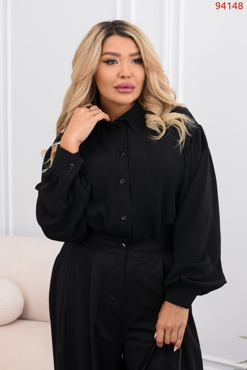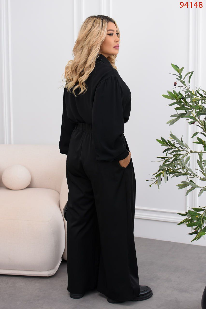 Костюм – універсальний комплект для роботи, прогулянок і особливих моментів. Вільна сорочка додає легкості, а кюлоти з еластичною талією позаду дарують комфорт та свободу рухів.
